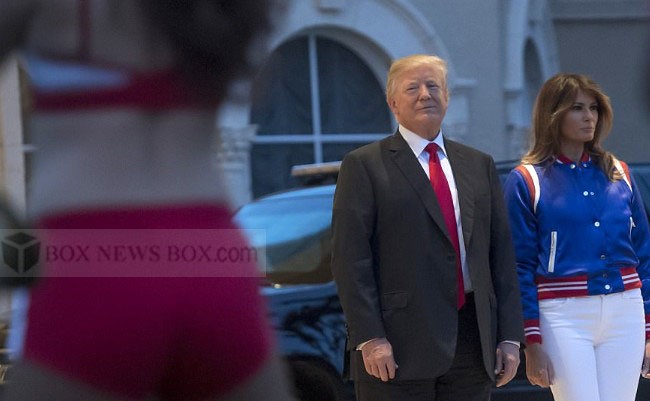The video shows Mr Trump attempting to grab her right hand, but failing. After an awkward shuffle, the two continue towards the aircraft.