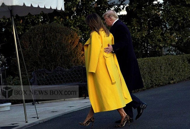 As the pair walked toward the presidential helicopter, Trump put his arm around Melania and gently escorted her there. She then boarded ahead of him and he turned and waived to the cameras.