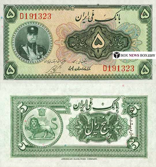 The Pahlavi hat was an item of headgear for men introduced in the Imperial State of Iran by Reza Shah. The introduction of the hat, in August 1927, was part of Reza Shah’s drive to westernize and modernize Iran, which included introducing European-style clothing. The hat was cylindrical with a peak, being based on the French military kepi, and was available in black or beige. Obverse: Portrait of Reza Shah Pahlavi wearing a Pahlavi hat  at left, all the scripts on the obverse.Reverse: Imperial Emblem of Iran during Pahlavi Dynasty  in ornamental circle, the value in figures 5 at each of the four corners.Banknotes of this issue were signed by Dr. Kurt Linden Blatt & Dr. Ali Alamir.Printed by American Bank Note Company, New York.