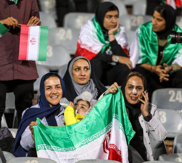 Fans at opening World Cup match in St Petersburg against last week also unfurled a banner that read “Let women enter their stadiums”.