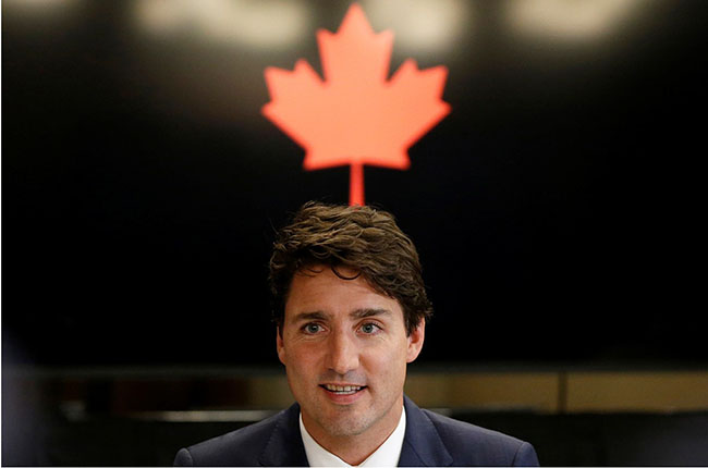 Canada’s Prime Minister Justin Trudeau speaks during a meeting with members of the China Entrepreneur Club with at Willson House in Chelsea, Quebec, Canada on 18 October 2016