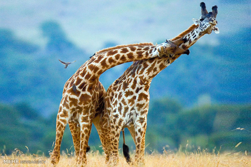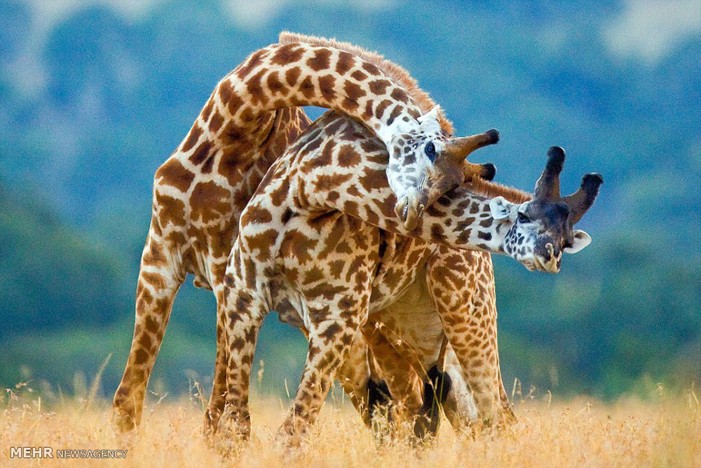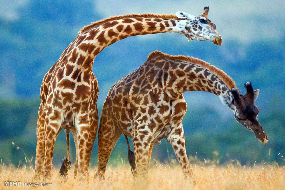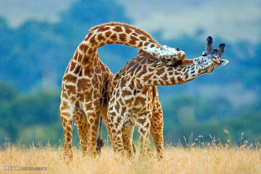 Despite their size the giraffes appeared to create perfect symmetry in what looked like a graceful dance number. The beautiful images of strange movements of giraffe neck, by a wildlife photographer has been hunting in the park, Masai Mara, Kenya.