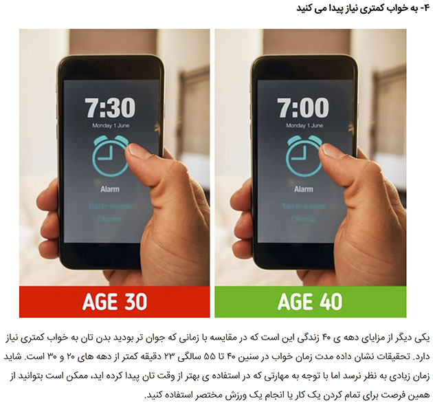Another good thing about being in your forties is the fact that your body requires less sleep than when you were younger. According to a study published in the journal, Sleep, adults between the ages of 40 and 55 sleep around 23 minutes less than adults in their twenties and thirties. That might not seem like much, but combined with your better use of time, you could get things done or sneak in a quick workout.