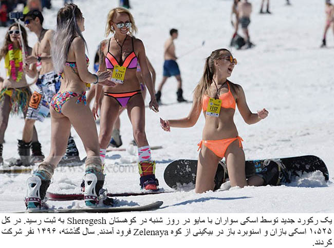 A new record was set by the mountain descent in swimsuits on Saturday at the ski resort of Sheregesh.