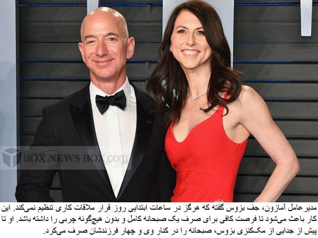 Amazon CEO Jeff Bezos has said he avoids early-morning meetings so that he has time to eat a healthy “leisurely” breakfast without any “fatty convenience foods.” He’s said he uses the extra time to spend mornings with his soon-to-be ex-wife, Mackenzie Bezos, and their four children, but that’s likely changed considering their coming divorce.