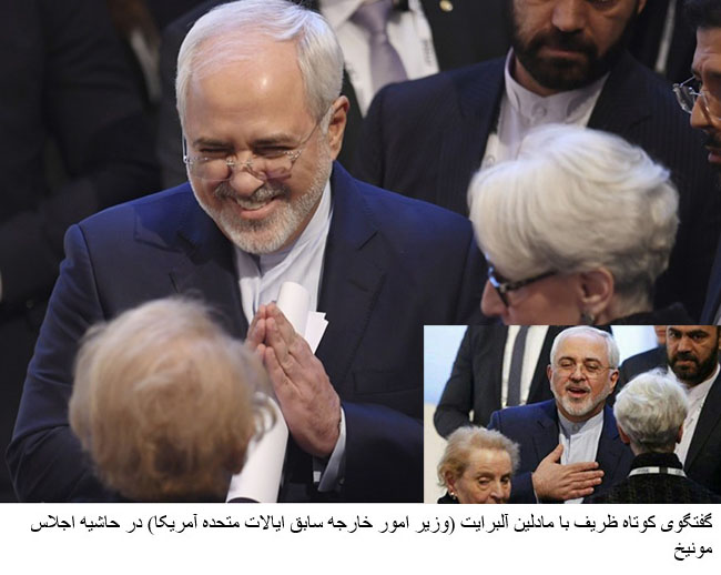Iranian Foreign Minister Mohammad Javad Zarif gestures next to the former U.S secretary of state Madeleine Albright during the 53rd Munich Security Conference in Munich, Germany.