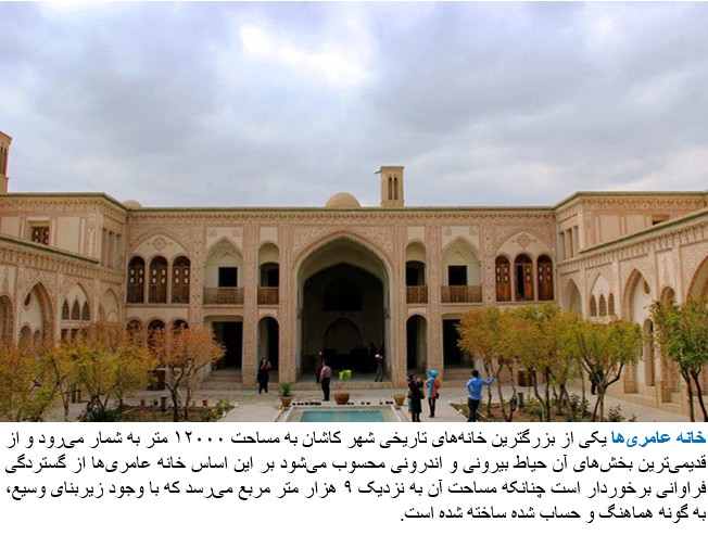 The Āmeri House, is a historic house in Kashan, in Isfahan Province, in Iran.It was built during the Zand era for Agha ‘Āmeri, the governor of Kashan, who was responsible for maintaining the security of the route between Tehran and housing seven courtyards, the Āmeri house is one of several large spectacular old houses in the central district of Kashan. Like the other houses around it, it was rebuilt in the 19th century, after the city was ravaged by a series of massive earthquakes in the 18th century.
