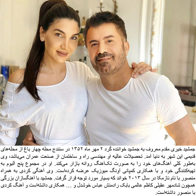 Jamshid Kheyri Moghadam known as Jamshid (September 1973 in) is a famous singer. He currently lives in Los Angeles, he was educated in civil engineering , you’ve seen from him a few Kurdi pieces in between songs, but mostly Persian and sings type of pop. He often gives his songs as singles and has released a total of four albums out.