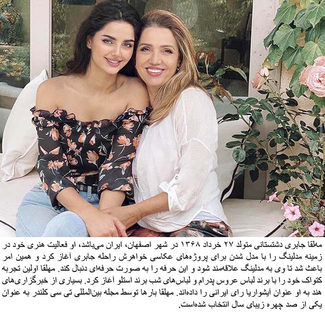 Mahlagha Jaberi (born in Isfahan, 17 June 1989) is an model currently residing in San Diego California. Mahlagha started her career in her late teen years and has since been active. She wanted to go further in modelling but as Iran prohibits women to pursue their career in showbiz so she had to work her way to USA to become a model. She is known for her amazing eyeliner and perfect hourglass body. She appeared in many magazine covers like Mode Lifestyle, Layalina, and hia.