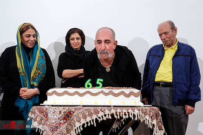 Farhad Aeesh, the famous theater actor celebrated his 65th birthday with some of his co actor, actresses and friends. He has also been involved in many films and movies, he studied acting in UK and United States. Farhad got to the even using his moped motorcycle.