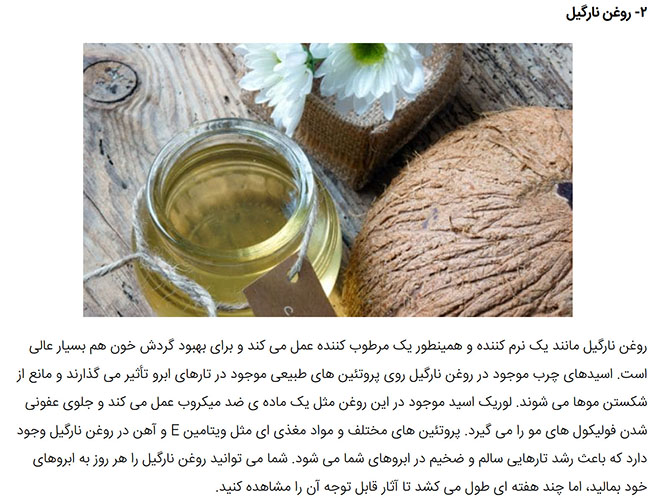 Coconut oil works as a conditioner as well as a moisturizer and is great for improving blood circulation. The fatty acids found in coconut oil work with the natural proteins found in hair to protect it from breaking The lauric acid present in it acts as an antimicrobial agent, preventing infection of hair follicles. The various proteins as well as nutrients like vitamin E and iron in coconut oil promote healthy and thick eyebrows. You can apply coconut oil on your eyebrows every day, but using it even a few times a week can have noticeable results.