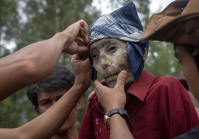 More horns signify more respect for the departed. Also, the corpses are usually buried in wooden coffins inside rock tombs, instead of grounds. The decreased babies are kept in the hollows of the trees. The people wrap the bodies in multiple layers of clothing to prevent them from decaying.