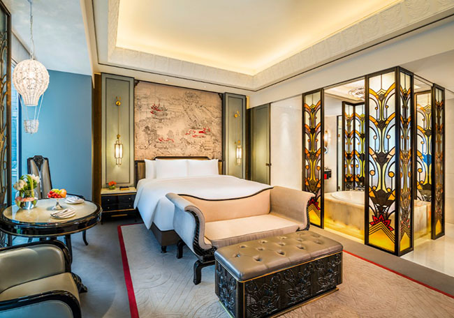 The designer of the ominously-named Wanda Reign is the well-known British architect Norman Robert Foster. Opened in June after three years of construction, the $516 million hotel is the latest addition to the many high-end hospitality options along the iconic Bund waterfront of the Huangpu River, joining the likes of the Peninsula, Waldorf Astoria and, across the river, Shangri-La and Grand Hyatt.