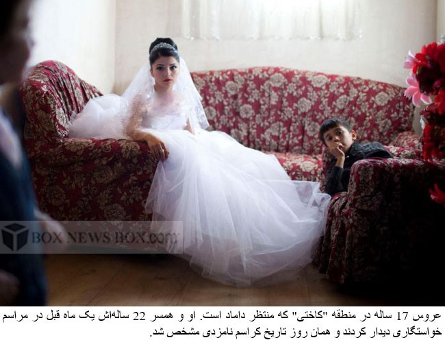 A 17-year-old Georgian-Azeri bride in the Kakheti Region waits for the groom to arrive on their wedding day. She and her 22-year-old husband-to-be met one month earlier, the day their engagement was announced.