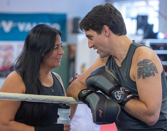 The embattled Canadian Prime Minister put on a pair of gloves, slipped into some boxing trunks and threw on a sleeveless shirt to spar with boxing champ Ali Nestor Wednesday, ahead of the leader’s huge debate in his quest for re-election.