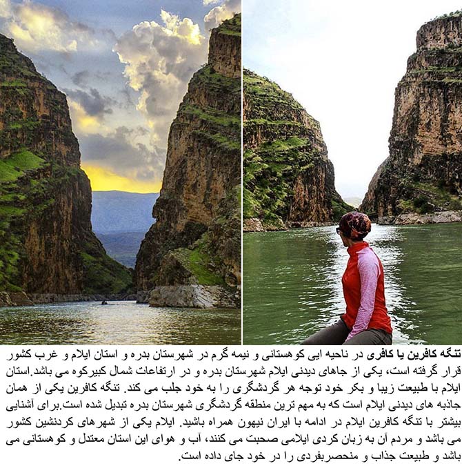 Tang Kafari is located in the 55 kilometer distance of Elam/Dareh Shahr route and in the 15 kilometer distance of Badreh town. Tang Kafari is located in the geographical location of in Elam province. Vast oak forests and wildlife variety such as the Squirrel are among the attractions of this area. In the 1 kilometer distance of the entrance of this canyon, the Zamzam water lake is located. Moreover, the shrine of Jaber is one of the other touristic places of this district.