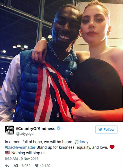 Lady Gaga called for kindness, Miley Cyrus was in tears, Madonna vowed never to give up and Katy Perry urged Americans not to weep as Republican Donald Trump stunned the world by defeating heavily favored Democrat Hillary Clinton in Tuesday’s US.
