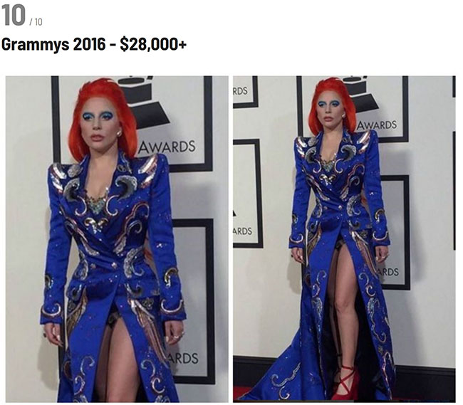 Some things in life are priceless. And the dress Lady Gaga wore during the Grammy Awards 2016 is probably one of them. She decided to pay tribute to David Bowie, who had just passed away. The American Horror Story star appeared on the red carpet wearing a blue Marc Jacobs embroidered suit. She matched it with a red wig, similar to the hair Bowie had on Life on Mars.