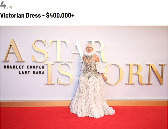 During the A Star is Born premiere in the UK, Lady Gaga appeared dressed as a fashionable Victorian queen. This fantastic gown, designed by Sarah Burton, creative director at Alexander MacQueen, is one of the best moments of the star in the red carpet.