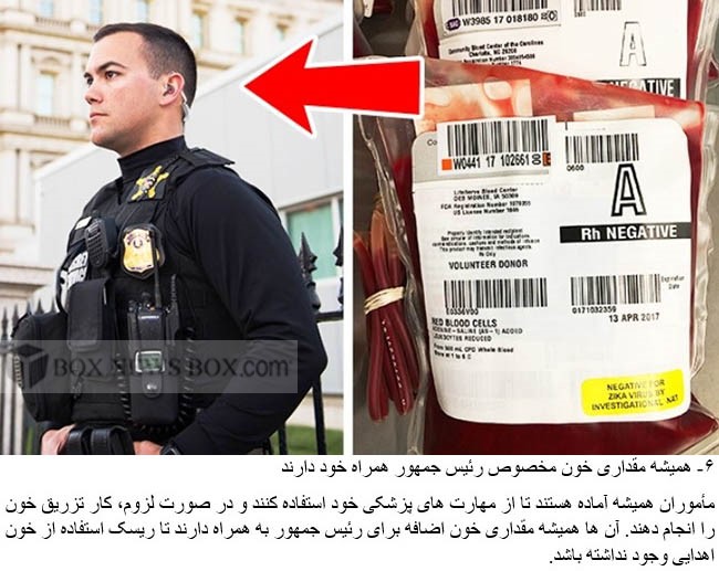 Agents are always ready to use their medical skills and perform a blood transfusion if needed. They always carry some extra blood for the president so as not to take chances with donors.