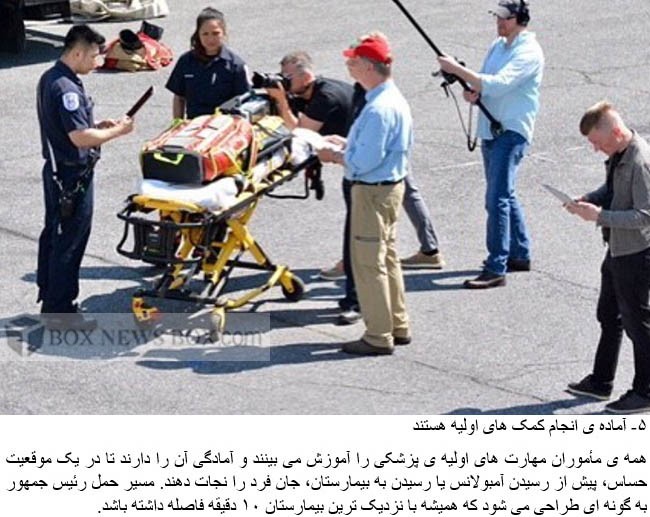 Every agent has basic medical skills and is ready to keep calm in a critical situation to save someone’s life before an ambulance arrives or before they arrive at the hospital. Each president’s route is thoroughly researched so that a hospital is always 10 minutes away.
