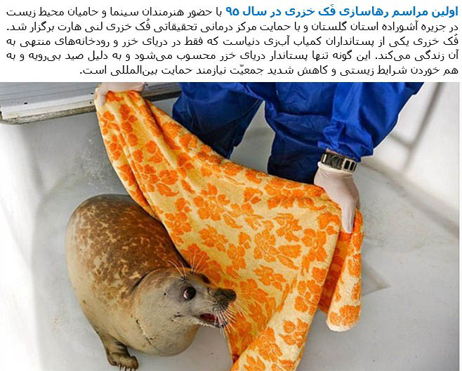 The Caspian seal is one of the smallest members of the earless seal family and unique in that it is found exclusively in the brackish Caspian Sea. They are found not only along the shorelines, but also on the many rocky islands and floating blocks of ice that dot the Caspian Sea. In winter, and cooler parts of the spring and autumn season, these marine mammals populate the Northern Caspian. Some actresses were in the first ceremony of manumission of Caspian seal in north.