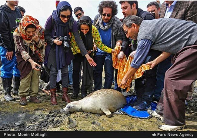 The Caspian seal is one of the smallest members of the earless seal family and unique in that it is found exclusively in the brackish Caspian Sea. They are found not only along the shorelines, but also on the many rocky islands and floating blocks of ice that dot the Caspian Sea. In winter, and cooler parts of the spring and autumn season, these marine mammals populate the Northern Caspian. Some actresses were in the first ceremony of manumission of Caspian seal in north.