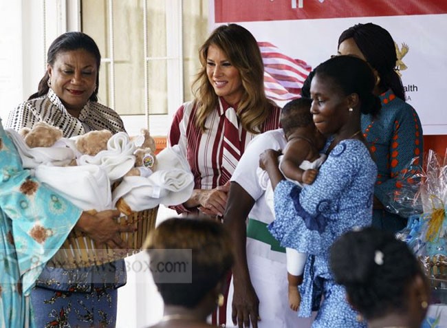A relaxed and smiling Trump arrived in Accra from Washington on Tuesday to a red carpet welcome of traditional dancing and flag-waving schoolchildren.