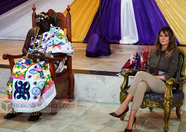 In a day of engagements as part of her “Be Best” campaign in education and healthcare, she handed out teddy bears to newborns and met her Ghanaian counterpart, Rebecca Akufo-Addo.The highlight of Wednesday’s itinerary was the tour of Cape Coast castle, a major outpost on the Atlantic slave trading route, where she also met members of the local Fante tribe.