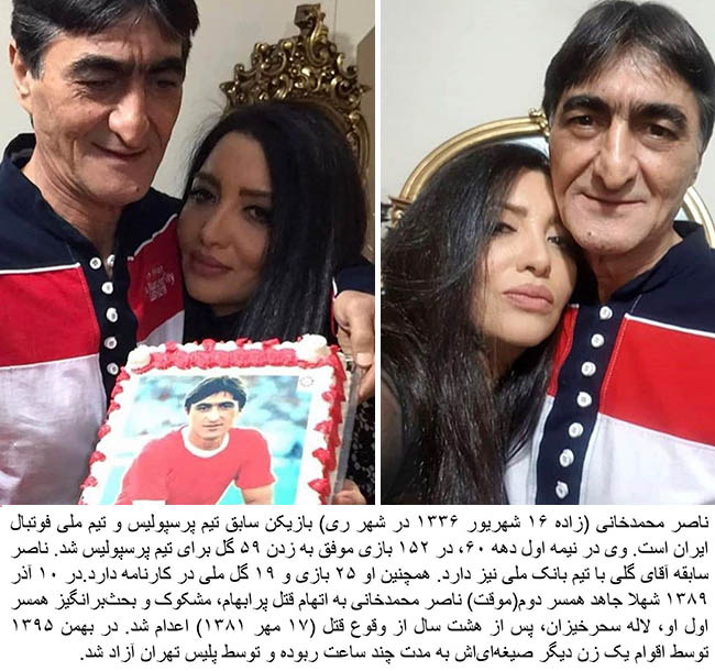 Naser Mohammadkhani (born 7 September 1957) is a retired Iranian football striker. He also worked as a coach for Persepolis club.Mohammadkhani was involved in a public court case, after his wife Laleh Saharkhizan was found murdered in her apartment on 9 October 2002. Shahla Jahed, his mistress in a temporary marriage arrangement was convicted of the murder of Laleh.