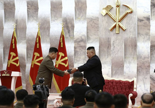 In the North’s capital, Kim handed out commemorative pistols to dozens of generals and senior officers, who pledged their loyalty to him, state media reported.