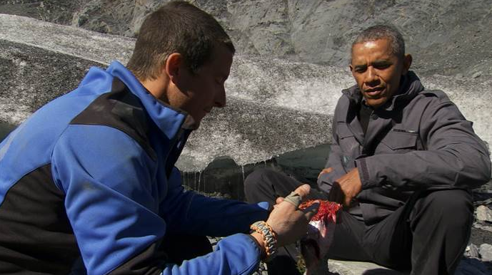 President Barack Obama takes the Alaskan wild with survival expert Bear Grylls. released an exclusive clip of POTUS trekking the woods and eating a salmon as part of their wild adventure.Shot during his three-day visit to Alaska, President Obama joined Grylls in an exciting experience of his life. “This has got to be one of the best days of my presidency,” Obama said while filming the special episode of NBC’s “Running Wild with Bear Grylls” last week. “First of all, I’m not in the office. Second of all, I’m not in a suit.”