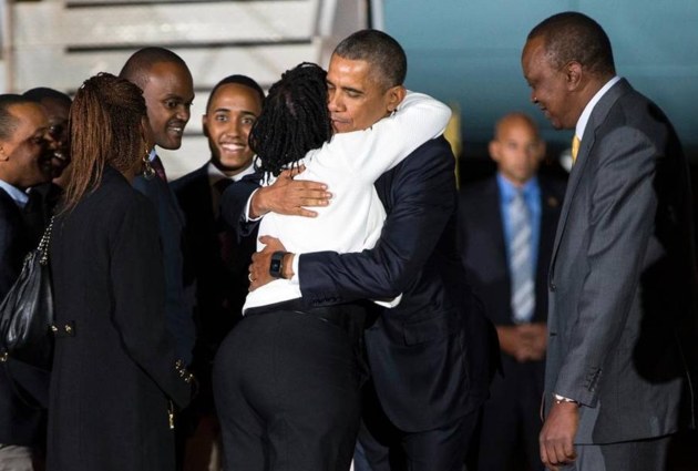 President Obama’s Air Force One touched down at Nairobi’s international airport. Arriving in the country where his father was born, he was greeted at the airport by President Kenyatta with a handshake and embrace. According to BBC Mr Obama also hugged his half-sister Auma, who then travelled in the presidential limousine to the hotel where the US leader is staying. Crowds cheered the motorcade along its route. At dinner, the president was joined by more relatives, including the woman known as “Granny” or “Mama Sarah”, who helped raise his now-deceased father. Security is tight. The Kenyan capital is in lockdown, many streets are closed and people are opting to stay at home. Mr Obama, the first sitting US president to visit Kenya, will hold talks on trade and investment, and also security and counter-terrorism.