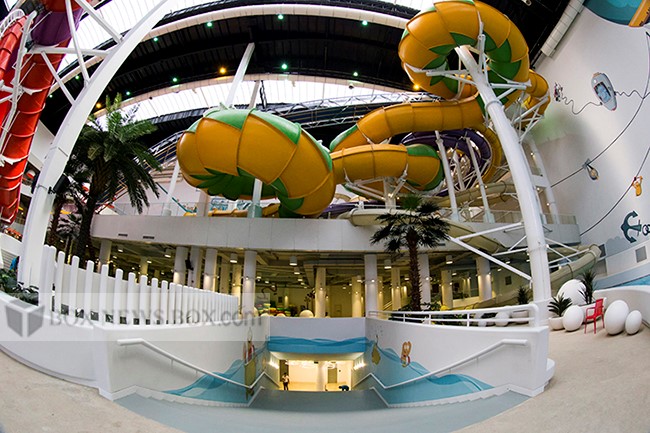 An unusual feature at a water park is ice skating. Deep River Water Park in northwestern Indiana features ice skating, made possible by cooling pipes installed under their massive plaza during a recent expansion.