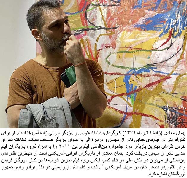 Paymān Maādi is an actor, screenwriter and director. He is best known for starring in the films A Separation and About Elly by director Asghar Farhadi and Last Knights with Morgan Freeman and the independent drama film Camp X-Ray.