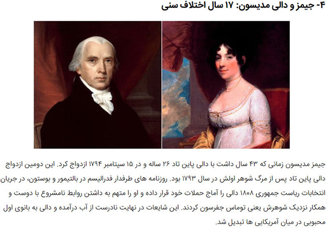 James Madison, when he was 43 years old, married 26-year-old Dolley Payne Todd on September 15, 1794. It was her second marriage after her first husband died in 1793.