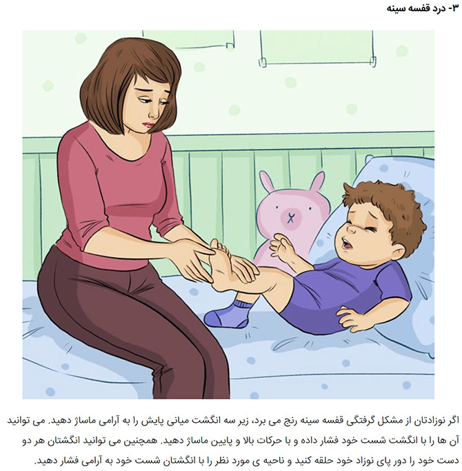 If your baby struggles with chest congestion, try gently massaging the spot below their 3 middle toes. You can press it with your thumb pad and massage it up and down. You can also try wrapping the fingers of both hands around your baby’s foot, and gently press the area with your thumbs.