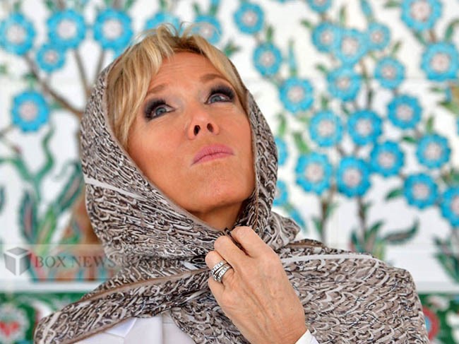 Mrs Macron has joined the French President on an official trip and today paid a visit to one of the nation’s most important religious sites, the Sheikh Zayed Grand Mosque.