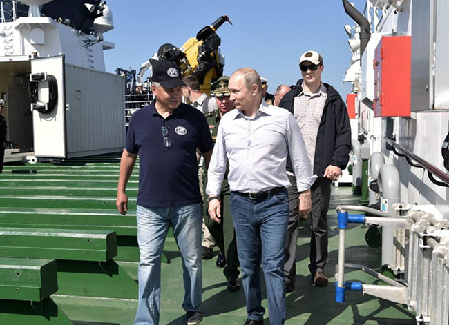 Putin was pictured smiling in the underwater craft, a C-Explorer 3.11 submersible.