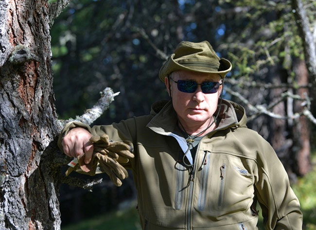 The video broadcast by Russian television showed Putin walking up the slope and pausing to look at the Yenisei River below and the surrounding mountains.