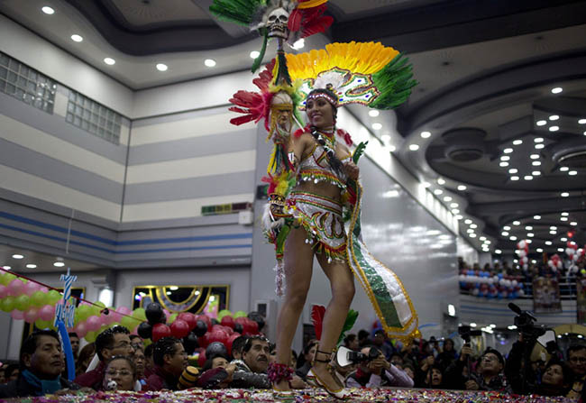 Wearing the red skirt, white-fringed shawl and hat of the “la morenada” dance, Steffany Arriaza Cabezas took first place among 73 participants in voting that concluded early Saturday. She will lead festivities on June 21.