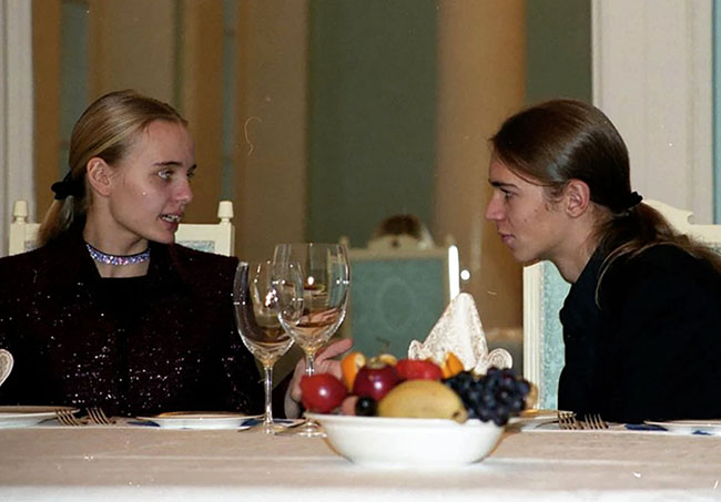 Both are now in their 30s, but the shots show the president’s daughters both inside the Kremlin and at Pugachev’s then-home near Moscow.