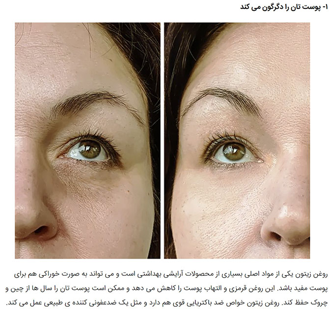 Olive oil is an essential ingredient in many cosmetic products, and it can benefit your skin as part of your diet too. It reduces redness and swelling, and may keep your face wrinkle free for longer. Olive oil has powerful antibacterial properties and serves as natural disinfectant.