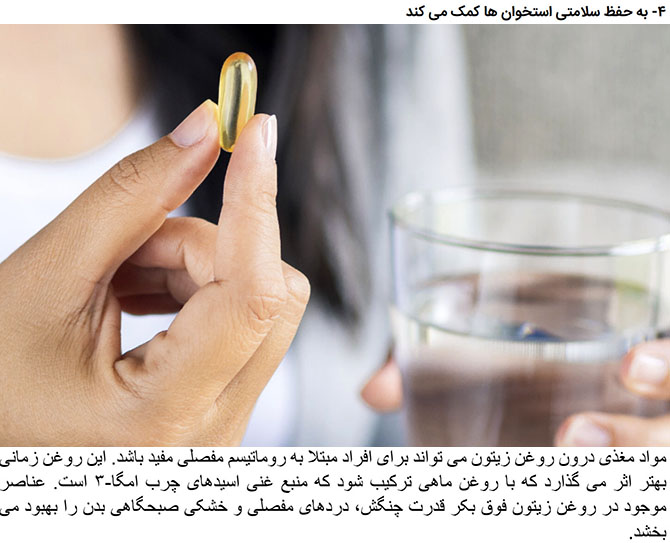 Trace elements in olive oil can benefit people suffering from rheumatoid arthritis. This works better when combined with fish oil, a rich source of omega-3 fatty acids. Compounds found in extra virgin olive oil improve handgrip strength, joint pain, and morning stiffness that are caused by arthritis.
