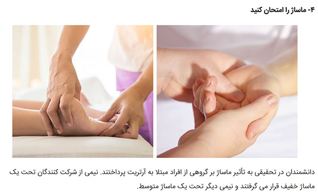 After 4 weeks, the second group, which received moderate massage, felt less pain in the affected joints, as well as greater freedom of movement and more grip strength. The Arthritis Foundation explained that massage decreases the production of the stress-associated hormone cortisol and the transmission of pain signals in the brain.