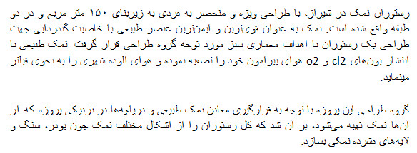 This is exactly what award-winning Iranian firm, Emtiaz Designing Group did when it designed “Salt Restaurant” in Shiraz.