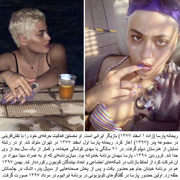 Reyhaneh Parsa was born on the first of Esfand[clarification needed] 1999 in Tehran. She holds a graduate degree in drama. At the age of 21, she divorced her husband, Mehdi Koushki, after being married less than a year.