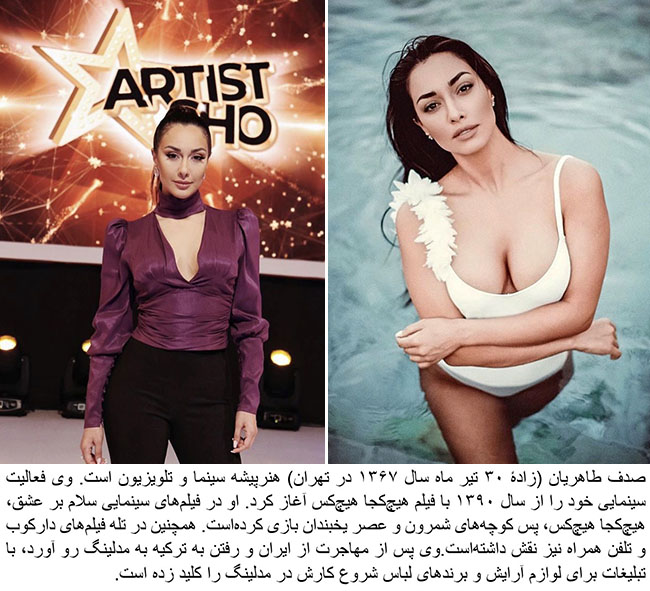 [custom_adv] Sadaf Taherian (born July 21, 1988) is a model and former actress. She had appearances in Movies and TV. [custom_adv] After leaving the country, Sadaf posted unveiled images of herself on Facebook and Instagram that were denounced by is ministry of culture and Islamic guidance. [custom_adv] Taherian began her professional acting career with a role in the film Nobody, Nowhere (2011) (fa). She followed it with another roles in four television series, including Woodpecker (2011) and Like a Dream (2012). [custom_adv] She currently works with various cosmetics, beauty and health care companies as mode in countries such as Turkey and UAE. She is fluent in Persian, Turkish and English.She was an actress. [custom_adv] Taherian started her modeling career after leaving her home country .