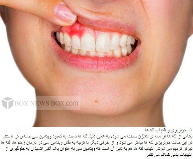 Your gums are made up partially of collagen, which is why they tend to be more sensitive when your vitamin C levels dip. They can bleed more, as well, and since vitamin C helps with wound healing, a deficiency means that bleeding gums won’t heal as quickly. Swollen gums are a result of inflammation, a process that vitamin C helps prevent as an antioxidant. Adequate vitamin C intake has been shown to be beneficial in improving gum health and reducing gum inflammation.
