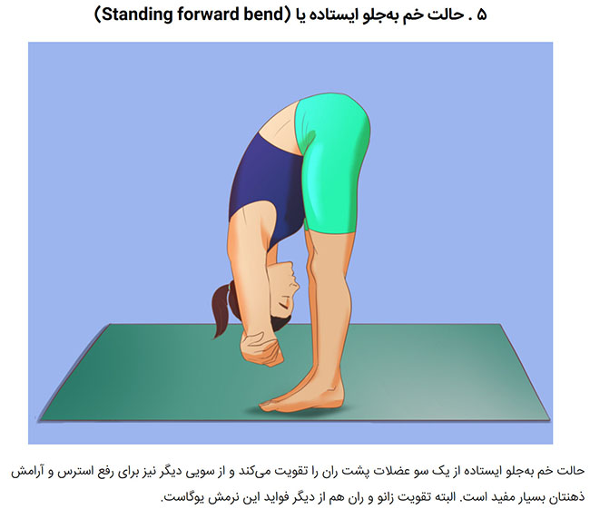 The standing forward bend pose will wake and tone your hamstrings as well as soothe your mind. It also helps to strengthen the thighs and knees.
